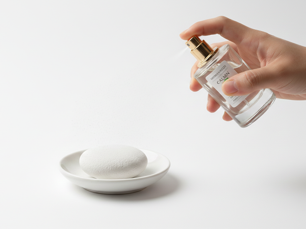 - 香水を2〜3プッシュ:石に直接、CALMINの香水を吹きかけます。